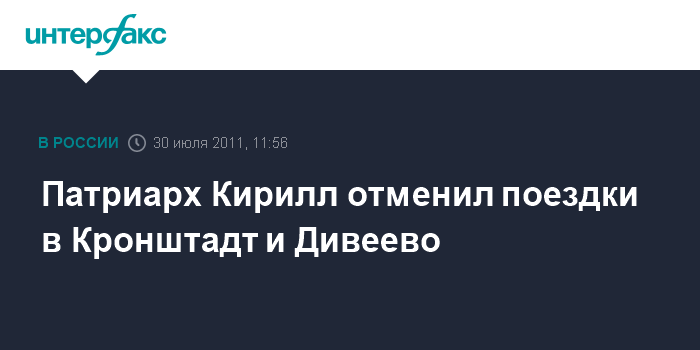 Патриарх Кирилл отменил поездки в Кронштадт и Дивеево
