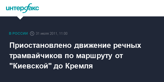 Приостановлено движение речных трамвайчиков по маршруту от "Киевской" до Кремля
