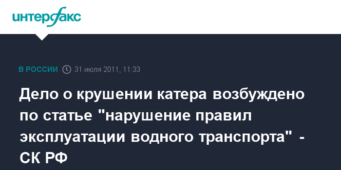 Дело о крушении катера возбуждено по статье "нарушение правил эксплуатации водного транспорта" - СК РФ