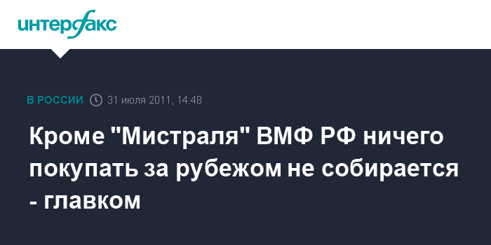 Кроме "Мистраля" ВМФ РФ ничего покупать за рубежом не собирается - главком