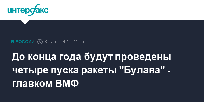 "До конца года в рамках летно-конструкторских испытаний будут проведены четыре пуска "Булавы". В планах испытаний предусмотрен и залповый пуск, но когда он состоится - в этом или следующем году - определит госкомиссия", - сказал главком.
