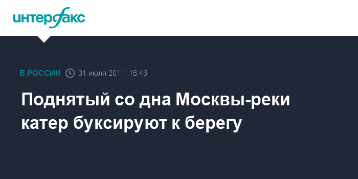 Москва. 31 июля. INTERFAX.RU - Спасатели транспортируют поднятый со дна Москва-реки катер к берегу, передает корреспондент "Интерфакса". Катер сильно разрушен, многие конструкции и стойки на палубе корабля деформированы или уничтожены полностью.