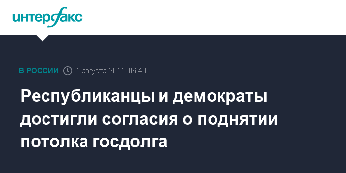 Республиканцы и демократы достигли согласия о поднятии потолка госдолга