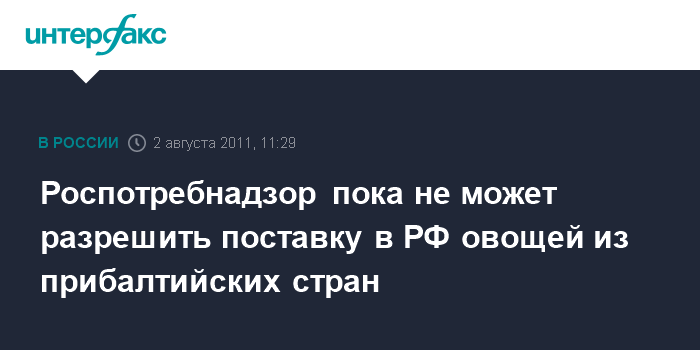 Москва. 2 августа. INTERFAX.RU - Прибалтийские страны не представили необходимых документов для того, чтобы возобновить поставки овощной продукции в Россию, заявил "Интерфаксу" во вторник руководитель Роспотребнадзора, главный государственный санитарный врач РФ Геннадий Онищенко. "Должным образом оформленных документов пока не поступило", - сказал Онищенко о Литве, Латвии и Эстонии.