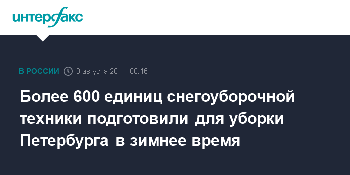 Санкт-Петербург. 3 августа. INTERFAX.RU - Более 600 единиц снегоуборочной техники будут обеспечивать чистоту Петербурга в зимнее время, сообщает пресс-служба городского правительства. "Комитетом по благоустройству объявлен аукцион на закупку 50 машин, готовятся документы на аукцион по закупке 50 лаповых погрузчиков и 402 единиц техники с комплектами навесного оборудования", - говорится в сообщении.