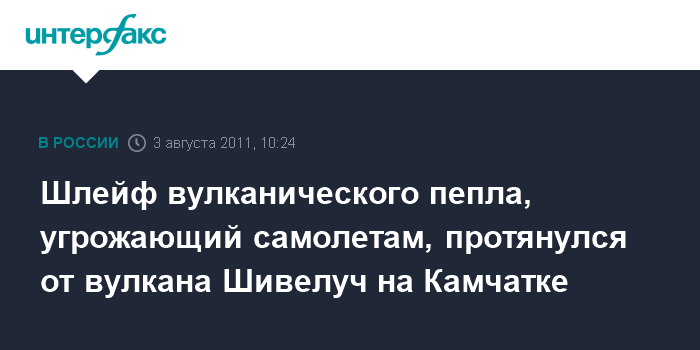 Шлейф вулканического пепла, угрожающий самолетам, протянулся от вулкана Шивелуч на Камчатке