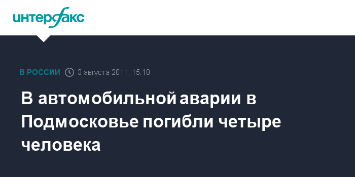 Москва. 3 августа. INTERFAX.RU - Четыре человека погибли в автоаварии в Подмосковье, сообщил "Интерфаксу" источник в правоохранительных органах.