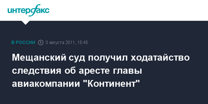 Мещанский суд получил ходатайство следствия об аресте главы авиакомпании "Континент"