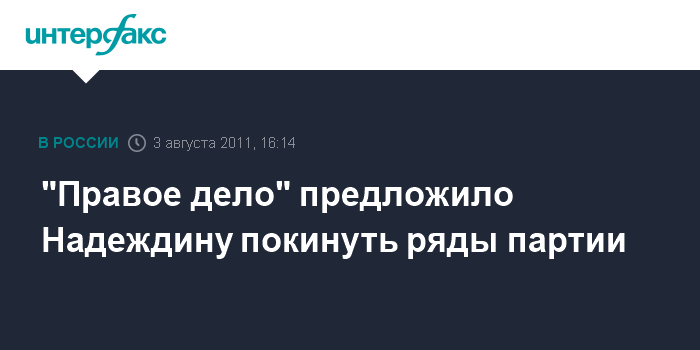 Москва. 3 августа. INTERFAX.RU - В "Правом деле" предлагают лидеру московского областного отделения Борису Надеждину покинуть партию в случае, если он действительно разделяет ксенофобские взгляды. "Прозвучавшие в прессе фамилии людей, близких к идеологам "Русского марша" и якобы имеющих отношение к "Правому делу" - это чистой воды инсинуация. Никаких официально выдвинутых от подмосковного отделения лиц, заигрывающих с национализмом, нет", - говорится в официальном заявлении "Правого дела", переданном в среду "Интерфаксу". "Это формальная рекомендация. Региональный и общефедеральный списки принимаются съездом партии, который пройдет в сентябре, или федеральным политсоветом партии. И уж поверьте, националистов там не будет. Партия "Правое дело" - это партия не экстремистов, а партия адекватных людей", - отмечается в заявлении.