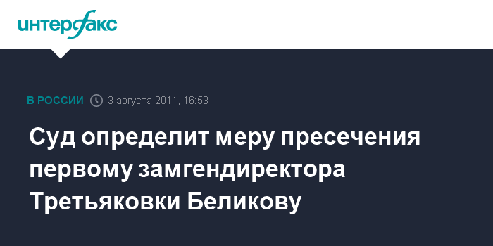 Суд определит меру пресечения первому замгендиректора Третьяковки Беликову