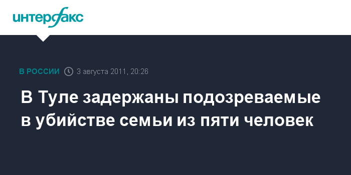 Москва. 3 августа. INTERFAX.RU - Сотрудники полиции задержали в Туле двух подозреваемых в убийстве семьи из пяти человек, сообщил "Интерфаксу" в среду вечером источник в правоохранительных органах.