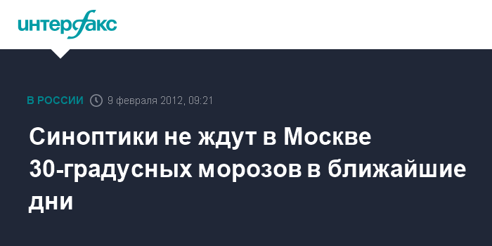 Синоптики не ждут в Москве 30-градусных морозов в ближайшие дни