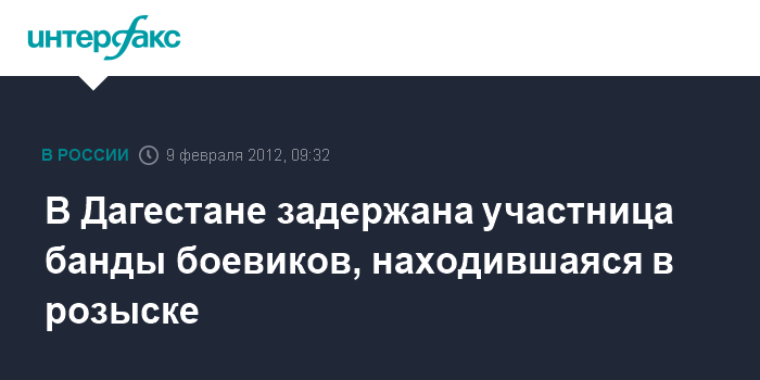 Москва. 9 февраля. INTERFAX.RU - В Хасавюртовском районе республики Дагестан задержана участница незаконного вооруженного формирования.