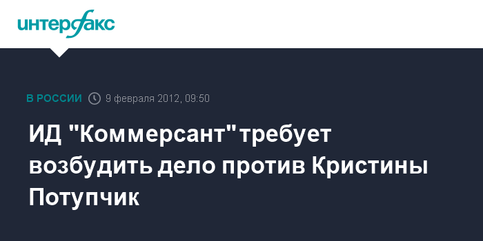 ИД "Коммерсант" требует возбудить дело против Кристины Потупчик