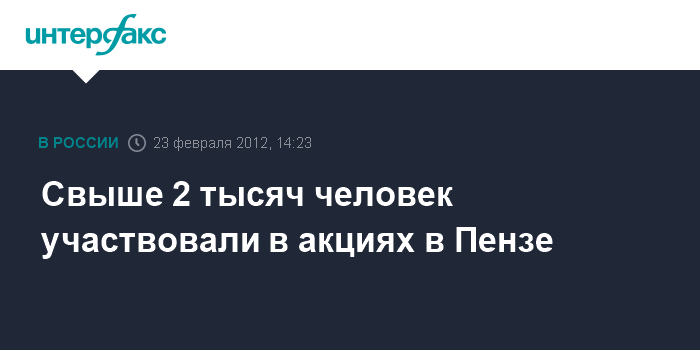 Пенза. 23 февраля. INTERFAX.RU - В День защитника Отчества в Пензе состоялись несколько акций с общим числом участников свыше 2 тыс. человек, инцидентов не отмечено.