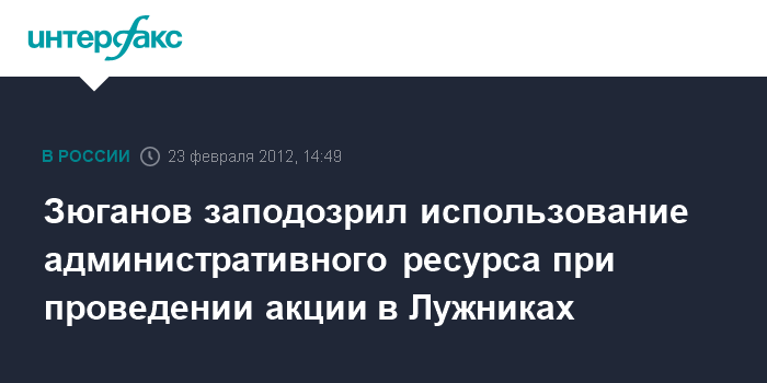 Зюганов заподозрил использование административного ресурса при проведении акции в Лужниках