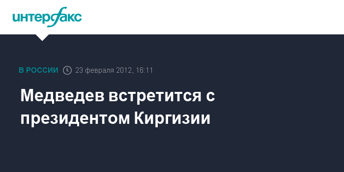 Москва. 23 февраля. INTERFAX.RU - В Москве в пятницу состоится встреча президента РФ Дмитрия Медведева с президентом Киргизской республики Алмазбеком Атамбаевым, который по приглашению главы российского государства посетит Россию с рабочим визитом 23-25 февраля. Как сообщили "Интерфаксу" в пресс-службе президента РФ, это первый визит А.Атамбаева в Россию в качестве президента Киргизии.