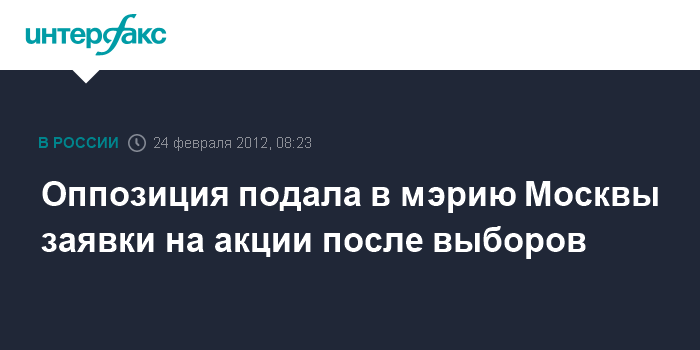 Москва. 24 февраля. INTERFAX.RU - Оппозиция подала заявки на проведение в Москве митингов после президентских выборов - 8, 9 и 10 марта.