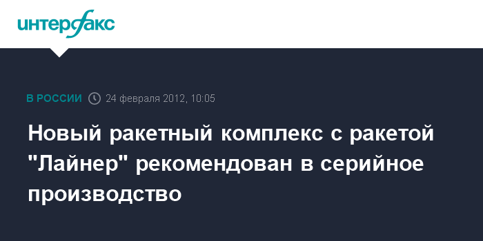 Москва. 24 февраля. INTERFAX.RU - Завершены опытно-конструкторские работы по разработке ракеты "Лайнер", сообщил руководитель Государственного ракетного центра имени Макеева Владимир Дегтярь.