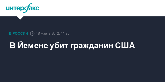 Дубай. 18 марта. INTERFAX.RU - Двое неизвестных вооруженных людей застрелили в воскресенье гражданина США в йеменском городе Таиз, сообщает межарабский телеканал "Аль-Джазира". Сообщается, что нападавшие застрелили американца, проезжая мимо него на мотоцикле, после чего скрылись с места преступления. Погибший работал заместителем директора в Шведском языковом центре в городе Таиз.