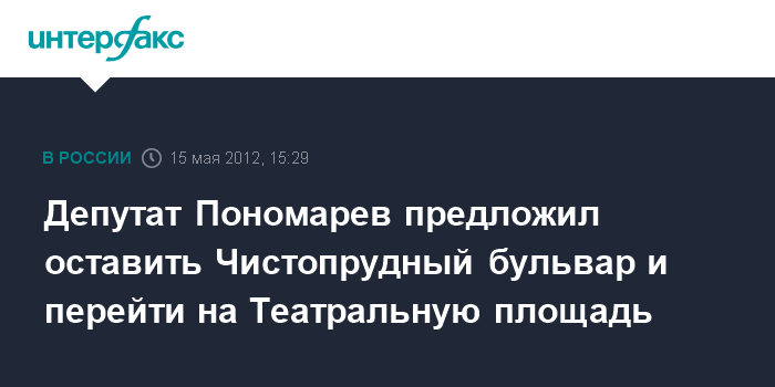 Депутат Пономарев предложил оставить Чистопрудный бульвар и перейти на Театральную площадь