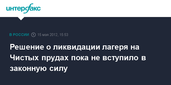 Москва. 15 мая. INTERFAX.RU - Представитель Басманного суда Москвы заявила о необходимости немедленного исполнения судебного решения о ликвидации лагеря оппозиции на Чистопрудном бульваре.
