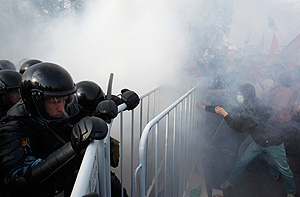Причиной массовых беспорядков стали действия неких провокаторов в масках, а сами организаторы митинга никакого отношения к ним не имеют, заявил другой лидер оппозиции, депутат Госдумы от партии "Справедливая Россия" Дмитрий Гудков. "В тот момент, когда мы уже договорились об открытии входа в сквер, и я пошел к Сергею Удальцову для того, чтобы ему об этом сказать, я увидел, как люди в масках, которые были рядом с сидевшими людьми, начали прорыв. То есть спровоцировали (действия полицейских - ИФ) не те, кто сидел, а провокаторы, которые начали прорыв оцепления", - сказал он, подчеркнув, что сотрудники полиции "до этого вели себя достаточно корректно, после этого отдельные из них поступали достаточно жестко и жестоко".
