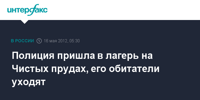 Москва. 16 мая. ИНТЕРФАКС - Полиция рано утром в среду потребовала от оппозиционеров покинуть лагерь на Чистопрудном бульваре в Москве, передает корреспондент "Интерфакса".
