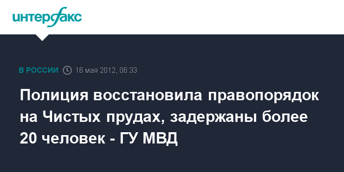 Москва. 16 мая. ИНТЕРФАКС - Столичная полиция восстановила правопорядок на Чистопрудном бульваре в Москве, освободив его от запрещенного судом лагеря оппозиции.