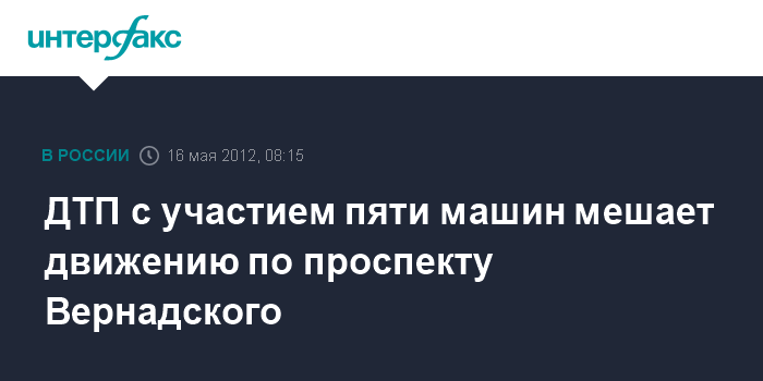 Москва. 16 мая. INTERFAX.RU - Из-за столкновения пяти легковых автомобилей затруднено движение на пересечении проспекта Вернадского и Университетского проспекта.