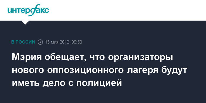 Мэрия обещает, что организаторы нового оппозиционного лагеря будут иметь дело с полицией