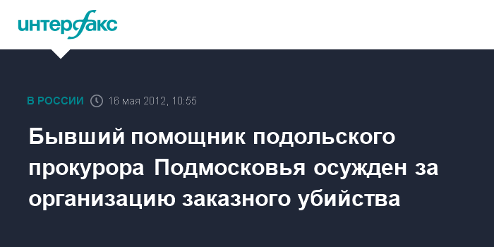 Бывший помощник подольского прокурора Подмосковья осужден за организацию заказного убийства