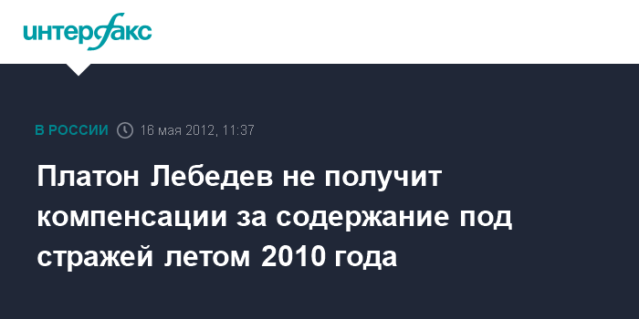 Москва. 16 мая. INTERFAX.RU - Тверской суд Москвы отклонил требование бывшего руководителя МФО "МЕНАТЕП" Платона Лебедева о компенсации за признанное незаконным содержание под стражей с мая по август 2010 года.