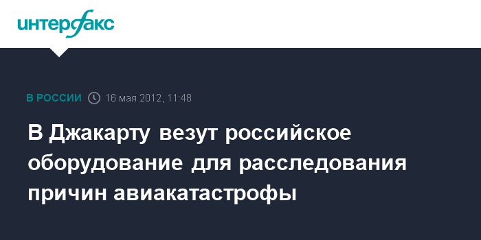 Джакарта. 16 мая. INTERFAX.RU - В индонезийскую столицу в четверг доставят из РФ специальное оборудование для расследования причин катастрофы российского самолета Sukhoi Superjet-100, который потерпел крушение на западе острова Явы, сообщил журналистам посол РФ в Индонезии Александр Иванов.