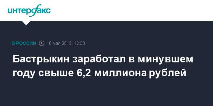 Москва. 16 мая. INTERFAX.RU - Доходы главы СКР Александра Бастрыкина в 2011 году выросли на 800 тыс. рублей по сравнению с позапрошлым годом, свидетельствуют данные о доходах сотрудников Следственного комитета, размещенные на официальном сайте ведомства.