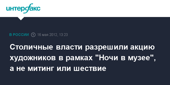 Столичные власти разрешили акцию художников в рамках "Ночи в музее", а не митинг или шествие