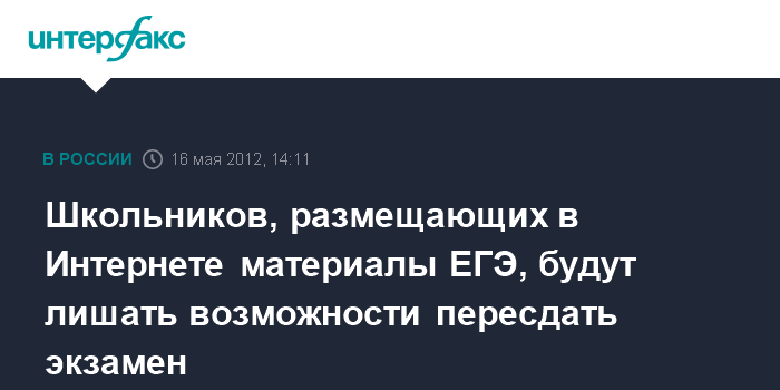 Москва. 16 мая. INTERFAX.RU - Школьники, которые размещают материалы ЕГЭ в интернете во время экзамена, будут лишены возможности пересдачи.