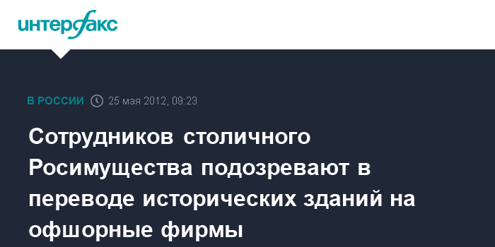 "Столичное ГУВД возбудило уголовное дело в отношении ряда чиновников управления Росимущества по Москве. Их подозревают в том, что они перевели десятки государственных исторических зданий на офшорные фирмы", - рассказали изданию в самом ведомстве.