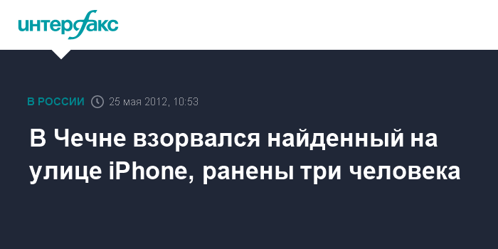 Москва. 25 мая. INTERFAX.RU - Три человека госпитализированы в Чеченской Республике из-за взрыва телефона iPhone.