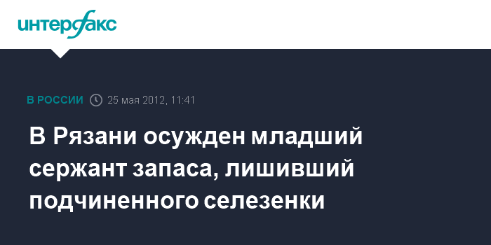 Москва. 25 мая. INTERFAX.RU - Суд в Рязани признал бывшего солдата-срочника Александра Кудейкина виновным в превышении полномочий с применением насилия и причинением тяжких последствий, а также нарушении правил несения службы, сообщает СК РФ в пятницу.