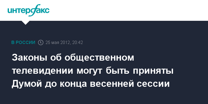 Барвиха.25 мая. INTERFAX.RU - Вице-премьер Аркадий Дворкович рассчитывает, что законопроекты по созданию в России Общественного телевидения будут приняты Госдумой до конца весенней сессии.