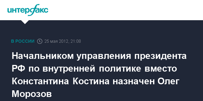 Начальником управления президента РФ по внутренней политике вместо Константина Костина назначен Олег Морозов
