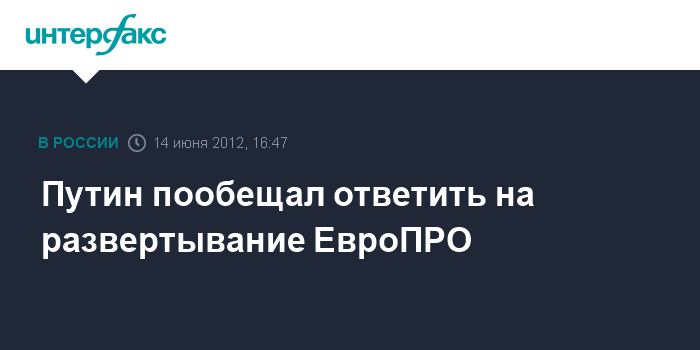 Кореновск (Краснодарский край). 14 июня. INTERFAX.RU - У России есть все возможности для адекватной реакции на развертывание Соединенными Штатами европейской ПРО, тем не менее, в Москве предпочли бы, чтобы все эти планы были пересмотрены, заявил президент РФ Владимир Путин на встрече с военнослужащими 393-й авиационной базы ВВС России.