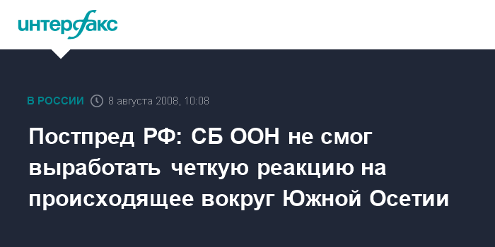 Москва. 8 августа. INTERFAX.RU - Постоянный представитель России в ООН Витай Чуркин заявил, что Совет Безопасности не смог адекватно отреагировать на события, происходящие в зоне грузино-осетинского конфликта.