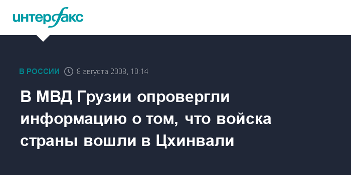 Москва. 8 августа. INTERFAX.RU - В МВД Грузии "Интерфаксу" опровергли распространенную некоторыми СМИ информацию о том, что грузинские подразделения вошли в Цхинвали. "Бои идут на окраине Цхинвали", - сказали в МВД Грузии.