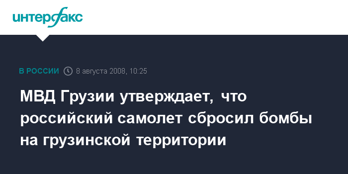 Москва. 8 августа. INTERFAX.RU - МВД Грузии утверждает, что три российских самолета нарушили грузинское воздушное пространство.