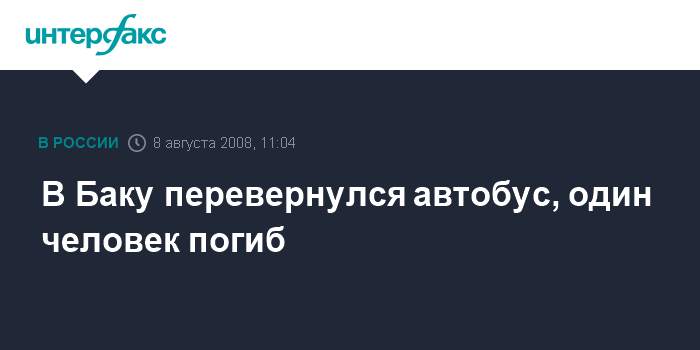 Москва. 8 августа. INTERFAX.RU - Автобус накануне перевернулся на Зыхсокм шоссе на территории Хатаинского района Баку, в результате чего погиб один человек, сообщили агентству "Интерфакс-Азербайджан" в районном управлении полиции в пятницу.