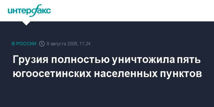 Москва. 8 августа. INTERFAX.RU - Тбилиси приступил к тактике "выжженной земли" в Южной Осетии, в настоящее время уничтожено пять югоосетинских населенных пунктов на границе с Грузией, заявил полномочный представитель РЮО в России Дмитрий Медоев.