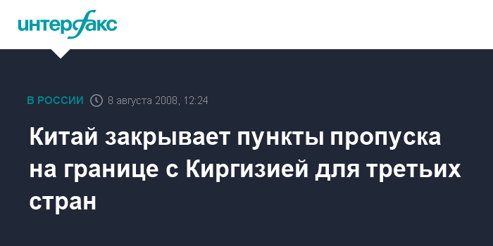 Москва. 8 августа. INTERFAX.RU - На период проведения летних Олимпийских игр Китай закрывает пограничные пункты пропуска на границе с Киргизией для третьих стран, но на границе с Казахстаном режим на КПП не изменился.