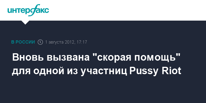 Москва. 1 августа. INTERFAX.RU - Участницам группы Pussy Riot вновь вызвали "скорую помощь". Как передает корреспондент "Интерфакса", судья Марина Сырова объявила перерыв, сообщив участникам процесса, что арестованным девушкам вызвана "скорая помощь".